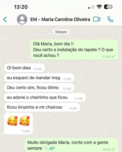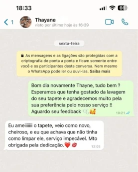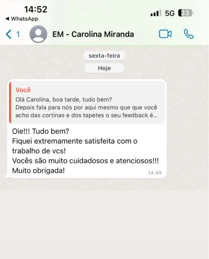 Na Esfrega Mais, transformamos a lavagem de tapetes e cortinas em uma experiência impecável, combinando transparência, cuidado e excelência em cada etapa. Antes de iniciar, avaliamos cada peça detalhadamente e comunicamos ao cliente qualquer observação importante, garantindo total confiança no processo.