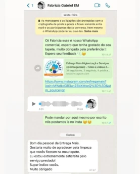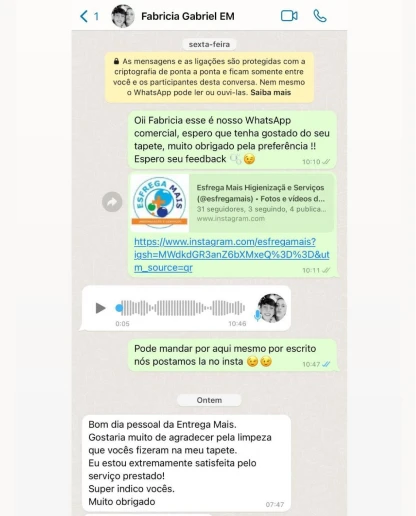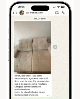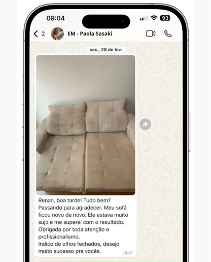 O toque final? Um perfume exclusivo que protege as fibras e encanta com sua fragrância. Na Esfrega Mais, não entregamos apenas limpeza, mas peças impecáveis e uma experiência que supera expectativas.